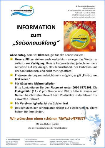 WAS GIBT'S NEUES BEIM 1. TC SEEBODEN ?